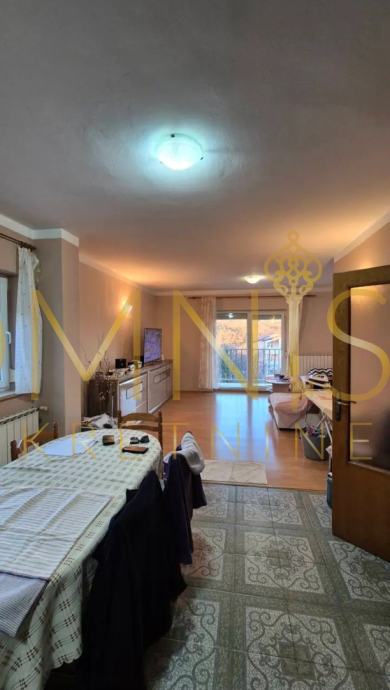 Na prodaju je prostrana kuća s dva stana, ukupne površine 170m2, smještena na parceli od 490m2 i s okućnicom od oko 320m2, u mirnom okruženju s djelomičnim pogledom na more.