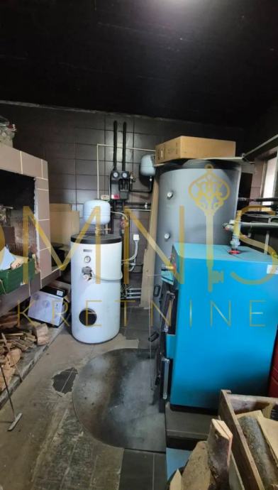 U dvorištu iza kuće nalazi se kućica s kotlovnicom i ljetnom kuhinjom, opremljenom kaminom. Na krovu kućice postavljeni su solarni paneli. Peć na drva u kotlovnici može se lako prenamijeniti na pelete, što omogućava dodatnu fleksibilnost u grijanju.