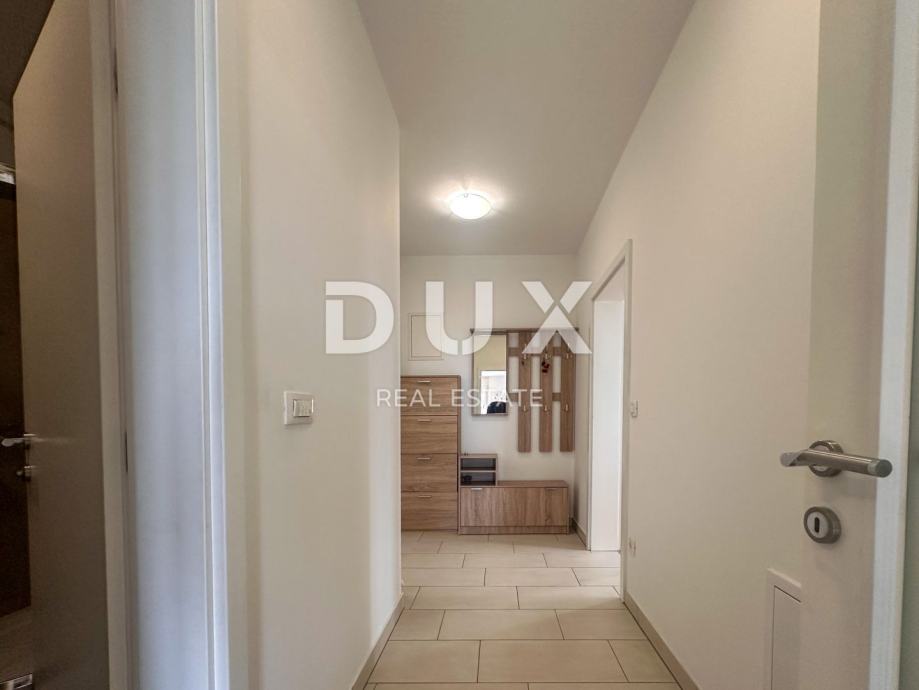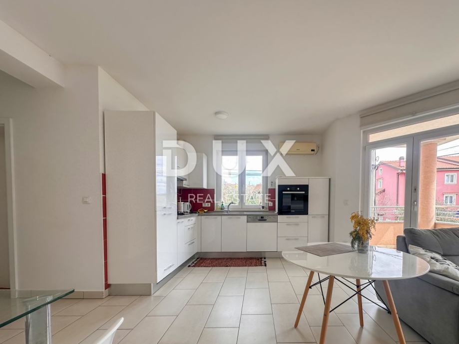 Stan je opremljen klima uređajem, protuprovalnim vratima i etažnim centralnim grijanjem na gradski plin, što omogućava ugodan boravak tijekom cijele godine. Iako se nalazi u prizemlju, s terase se pruža lijep pogled na more, što dodatno upotpunjuje dojam o ovoj nekretnini.