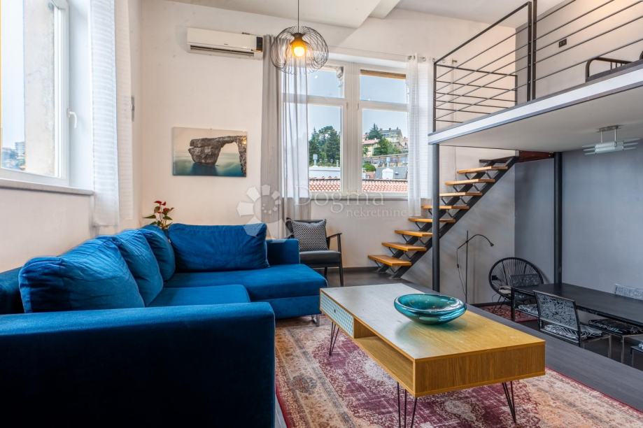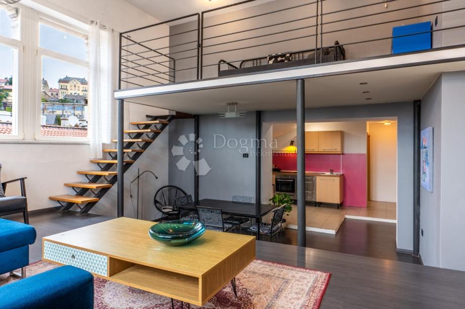U samom centru grada nalazi se ova iznimna, arhitektonski posebna nekretnina koja se izdvaja svojom autentičnošću, prozračnošću i dojmljivim panoramskim pogledom na gradske vizure i Rječinu.