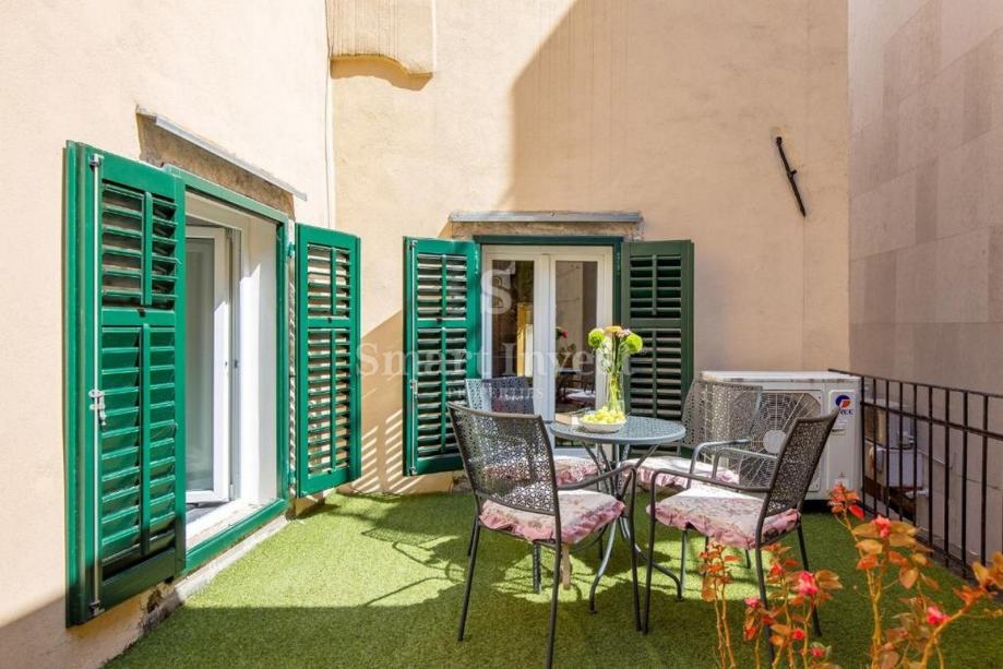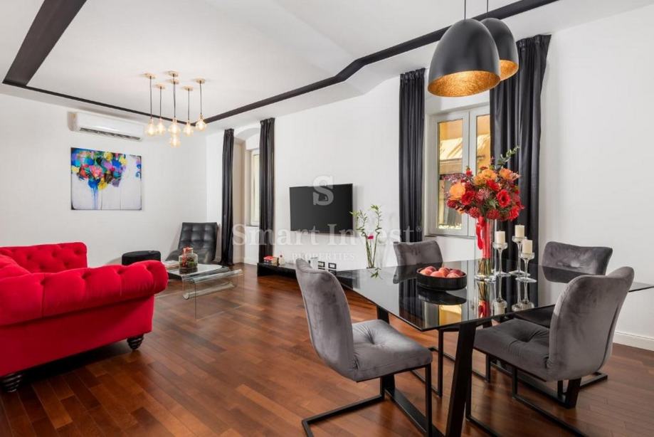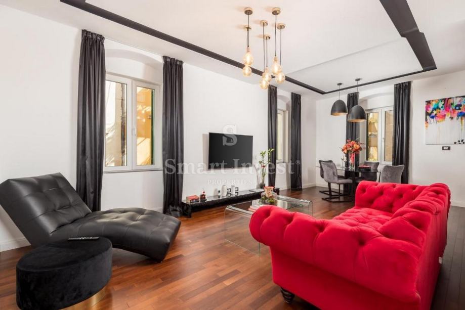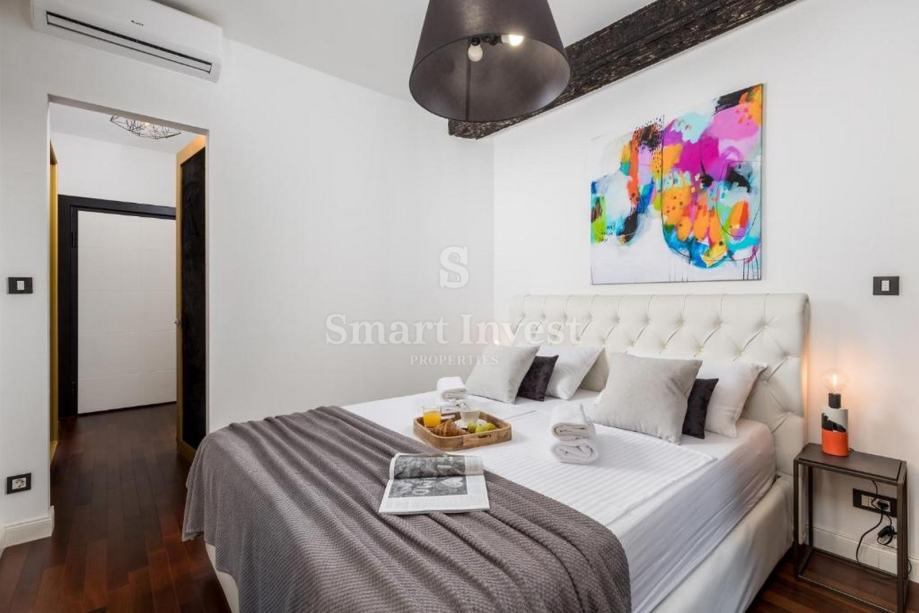 Prodaje se prostran i moderno uređen stan ukupne površine 77 m², smješten u samom centru grada, u pješačkoj zoni. Zbog vrhunske lokacije, odličnog rasporeda i dvije spavaće sobe te prostrane terase stan, je idealan za udoban gradski život ili kao izvrsna investicija u turistički/najamni posao.
