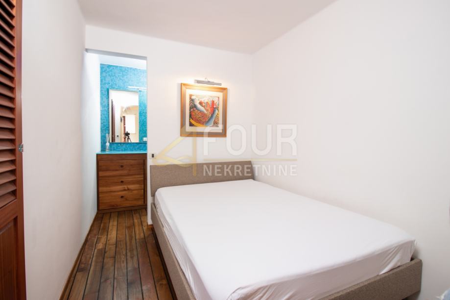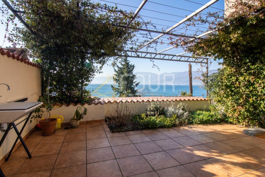 Prodaje se stan (111,92 m2) na prvom katu kuće koja posjeduje vlastitu okućnicu (cca 1800 m2) i prolaz sa stepenicama koje vode direktno na morsku obalu.