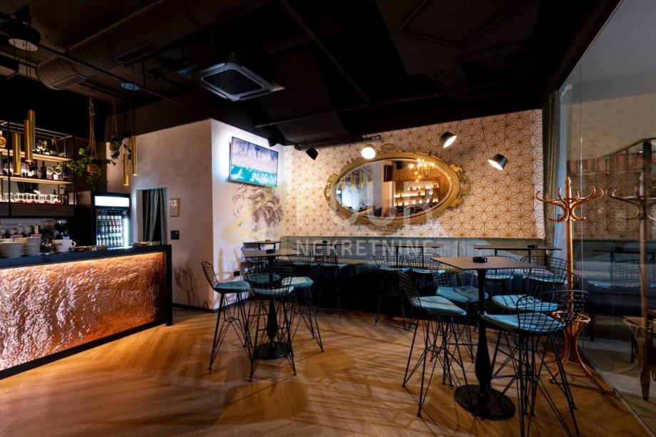 Prostor je uređen kao caffe bar i obuhvaća unutarnji prostor od 83,05 m2, unutarnju terasu od 84 m2 te vanjsku sjevernu terasu od 26,89 m2, uz okućnicu od 50 m2. Unutarnja terasa u vlasništvu, opremljena je s 13 stolova, dok vanjska nudi 28 stolova, pružajući idealne uvjete za ugodan boravak i ugostiteljsko poslovanje.