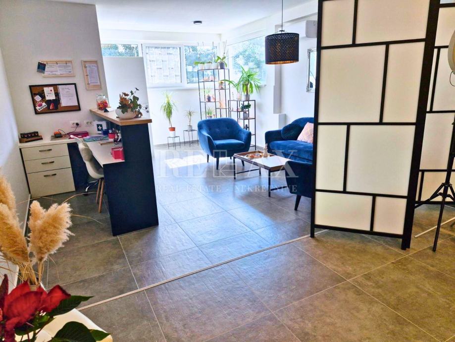 Prostor se sastoji od dvije prostorije, kupaonice i čajne kuhinje. Trenutno je djelomično uređen i korišten kao Beauty centar, dok je ostatak prostora neuređen, što budućem vlasniku ostavlja mogućnost prilagodbe i uređenja prema vlastitim potrebama. Bilo da tražite prostor za ured, trgovinu, frizerski salon, salon ljepote ili neku drugu djelatnost, ovaj objekt pruža fleksibilnost za različite poslovne koncepte.