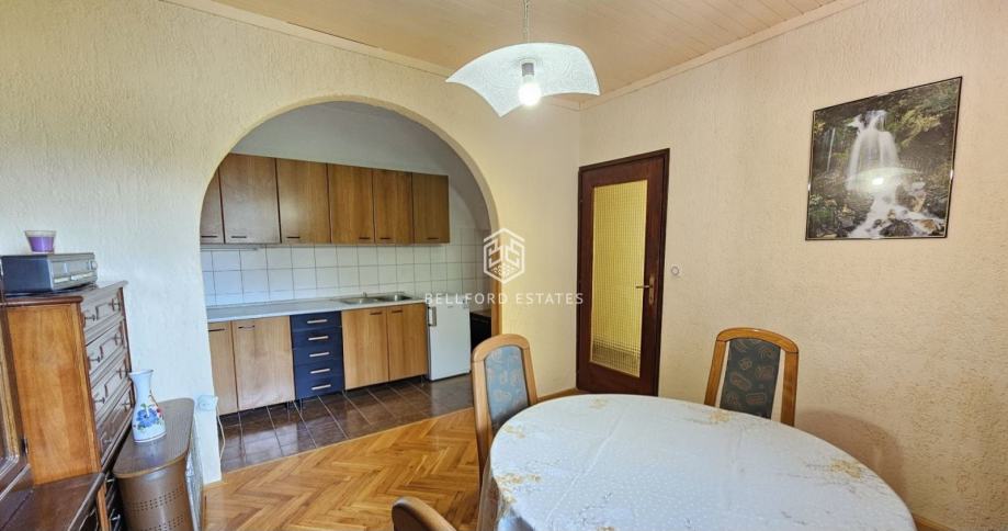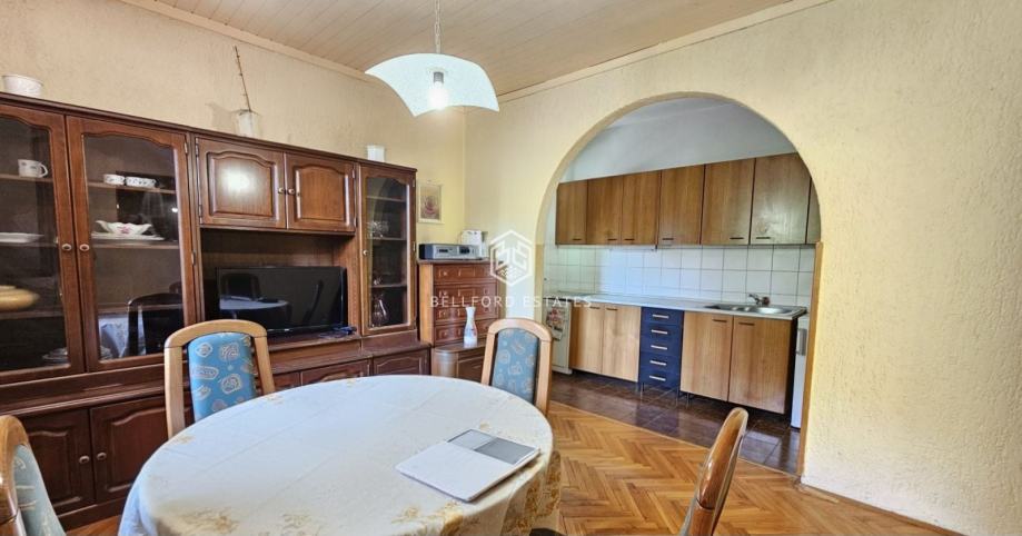 Pripadaju mu dva parkirna mjesta (jedno natkriveno) i vrt od 100 m2. Stan se prodaje namješten.