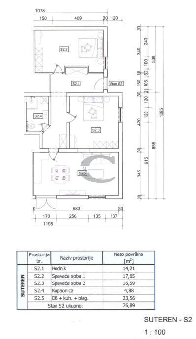 Iznajmljujemo 3s+db stan od 70 m2 za radnike.