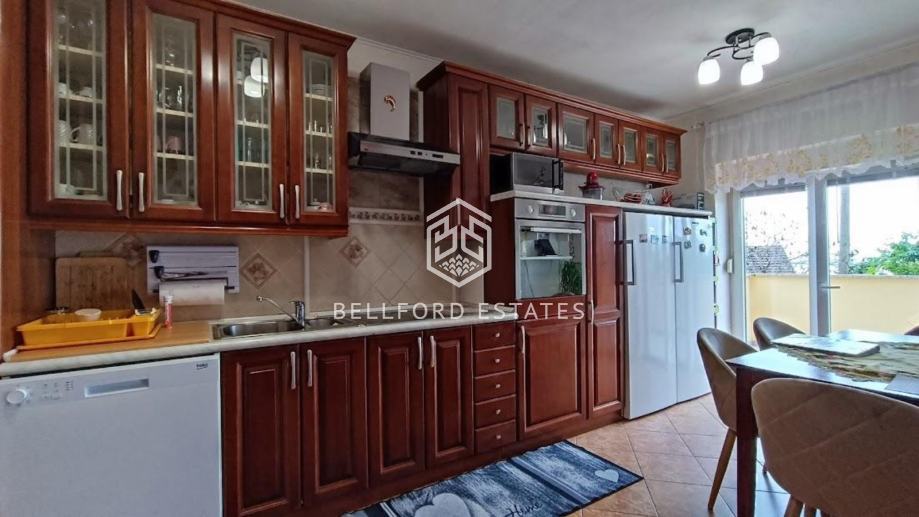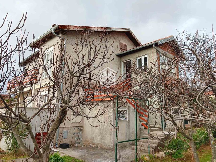 Prodaje se samostojeća kuća površine 250m2 na mirnoj lokaciji, na parceli od 800 m2, s dva odvojena stana, ljetnom kuhinjom, spremištem i uređenom, ograđenom okućnicom s voćkama i biljem.