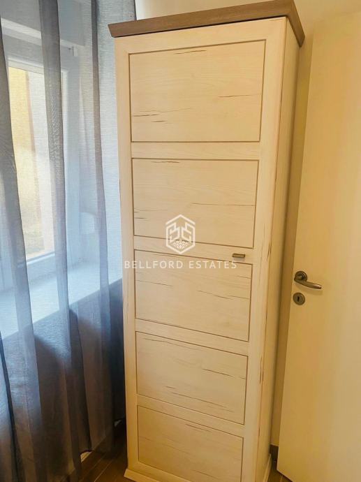 Sastoji se od dvije spavaće sobe, prostranog dnevnog boravka, kuhinje s blagovaonicom i kupaonice, a dodatne pogodnosti su vlastita terasa i parking.