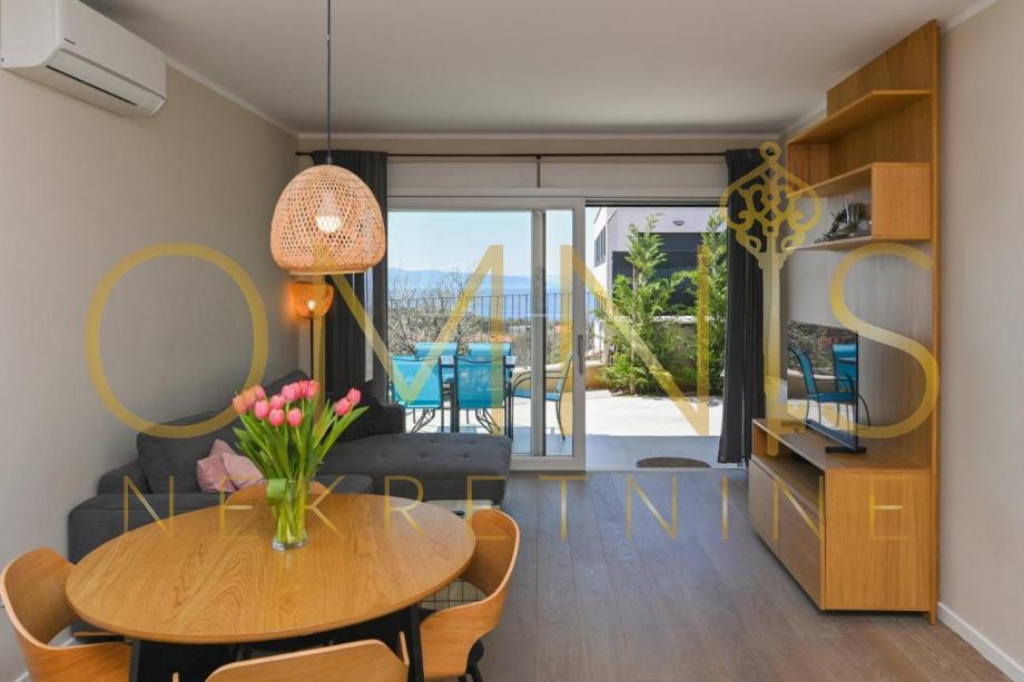 Stan je moderno uređen i opremljen sa svim aparatima. Stan ima centralno plinsko grijanje, dvorište i terasu s pogledom na more.