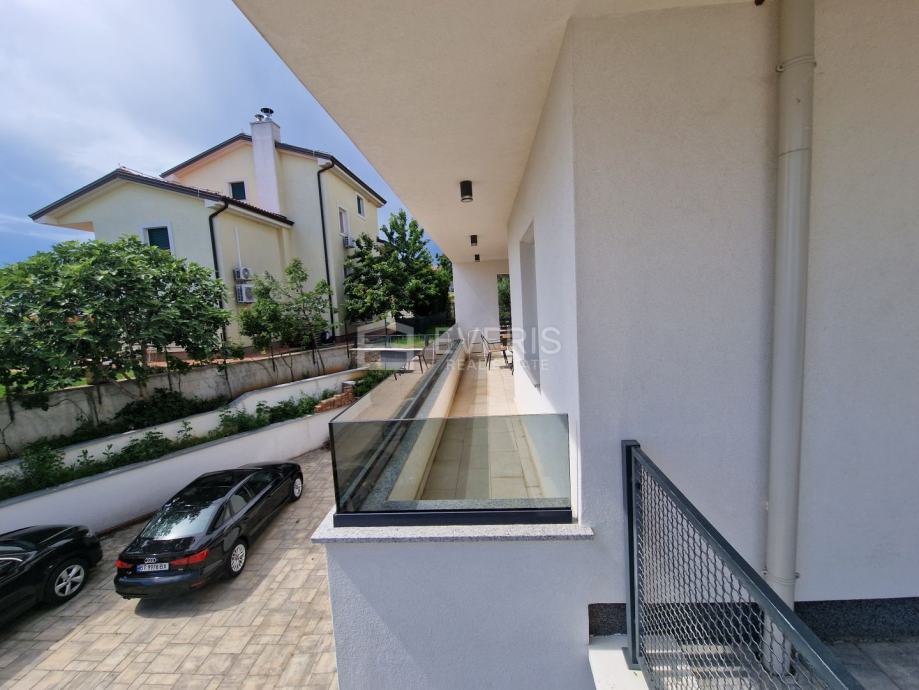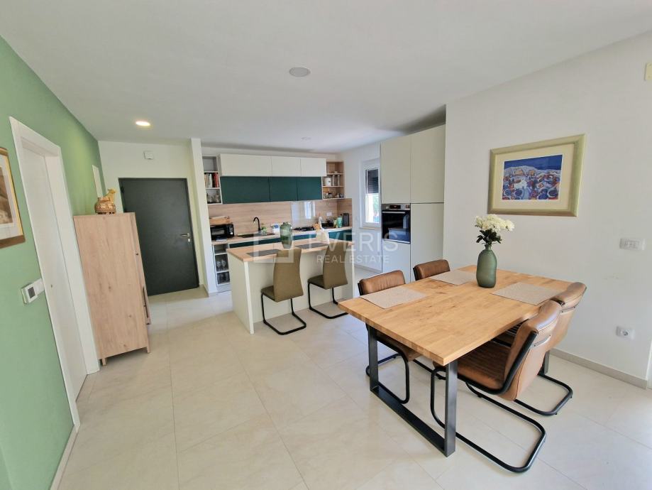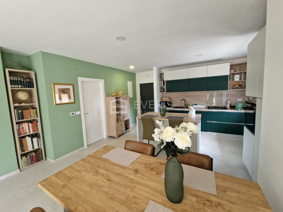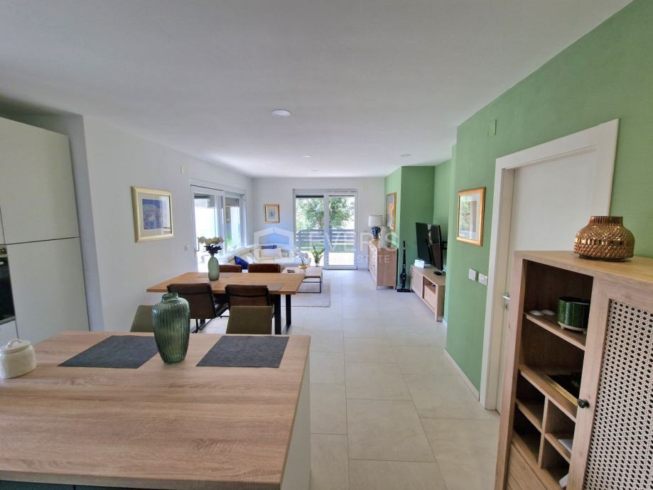 ▪ tri spavaće sobe, open space dnevni boravak / kuhinja / blagovaona s izlazom na natkrivenu terasu, degažman, dvije kupaone te garderobe ukupne površine 77 m2.