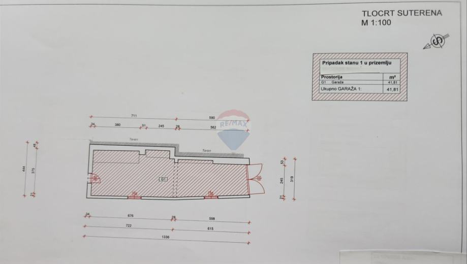 Stanu pripada garaža u suterenu površine 41,81 m2. Pola prostora garaže koji se trenutno koristi kao spremište