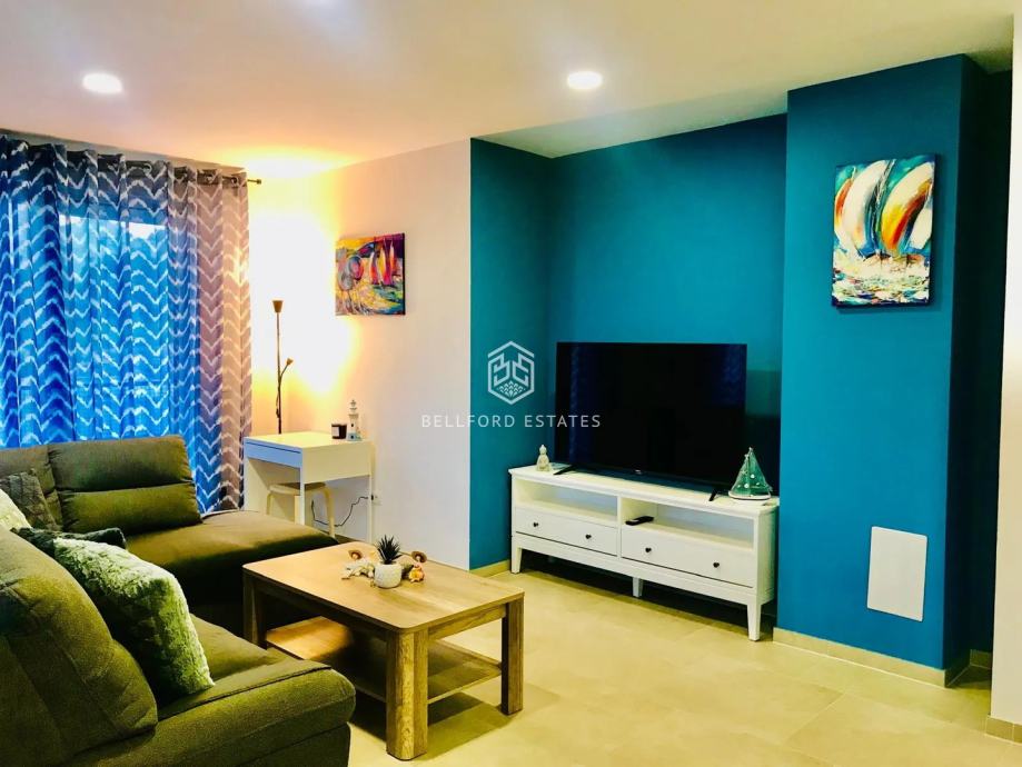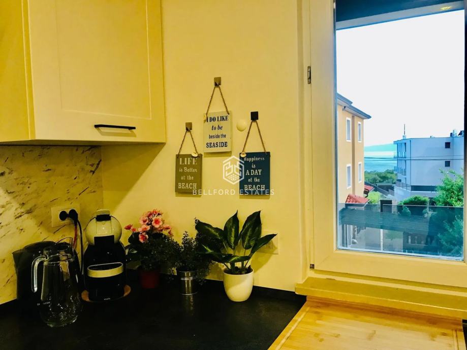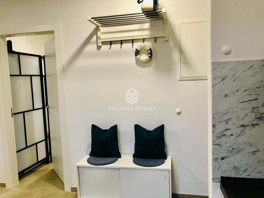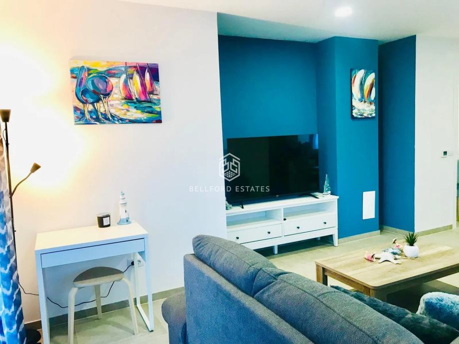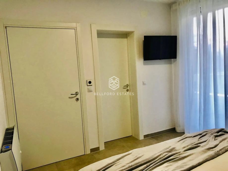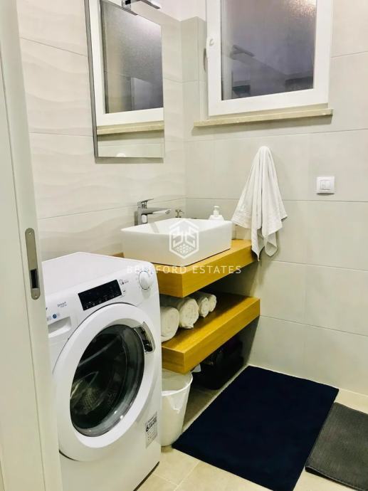 Smješten na prvom katu s pogledom na more s prostranog balkona koji se proteže oko stana. Uključuje dvije potpuno opremljene kupaonice, od kojih je jedna en suite.