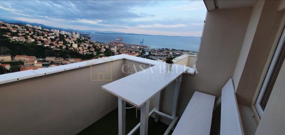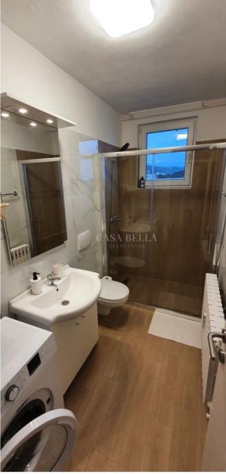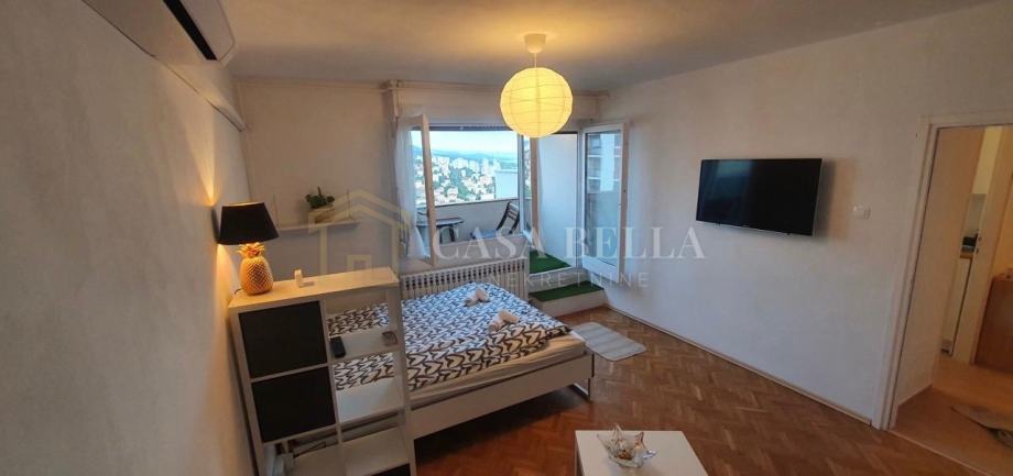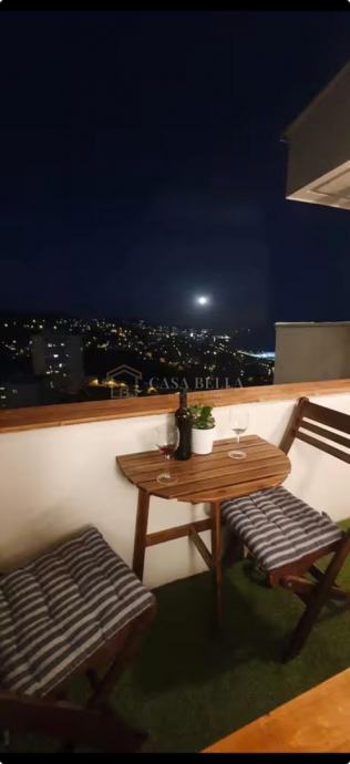 Iznajmljuje se potpuno uređen i opremljen stan površine 40 m², smješten na 15. katu stambene zgrade s dva lifta, s prekrasnim panoramskim pogledom na cijeli grad. Stan ima dva balkona, a zahvaljujući izvrsnom rasporedu prostorija djeluje znatno prostranije.