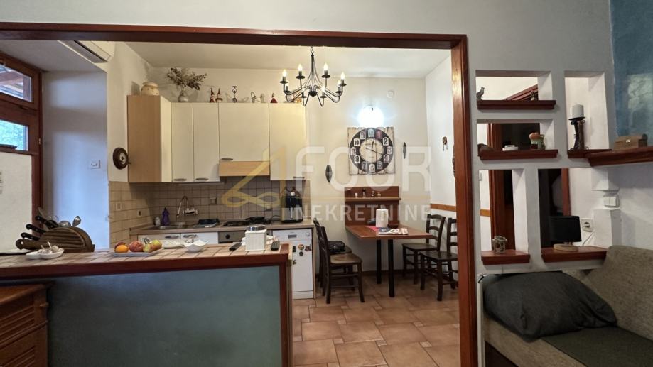 Dnevni boravak ima podno grijanje na struju i klima inverter, PVC stolarija zamijenjena je prije nekoliko godina, a u kuhinji se nalazi dimnjak koji trenutno nije u uporabi.