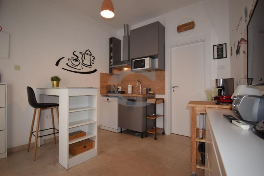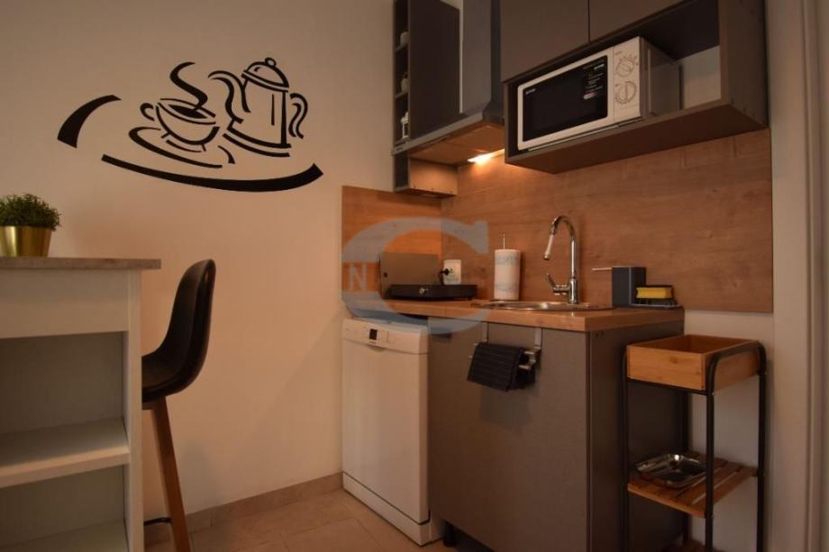 Iznajmljujemo novouređen i potpuno opremljen 1s+db stan od 30 m2 s natkrivenom terasom od 6 m2.