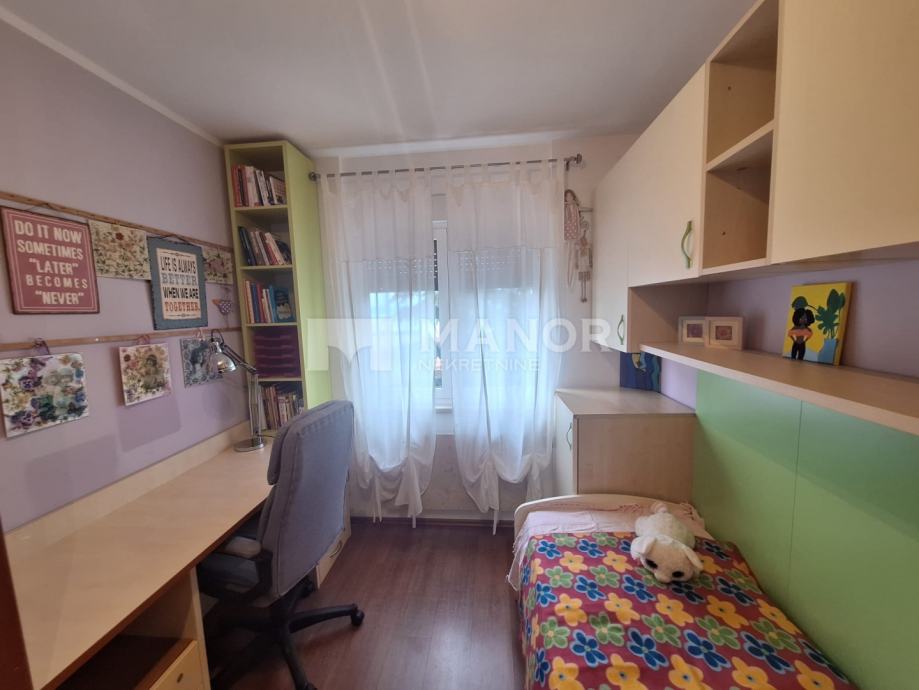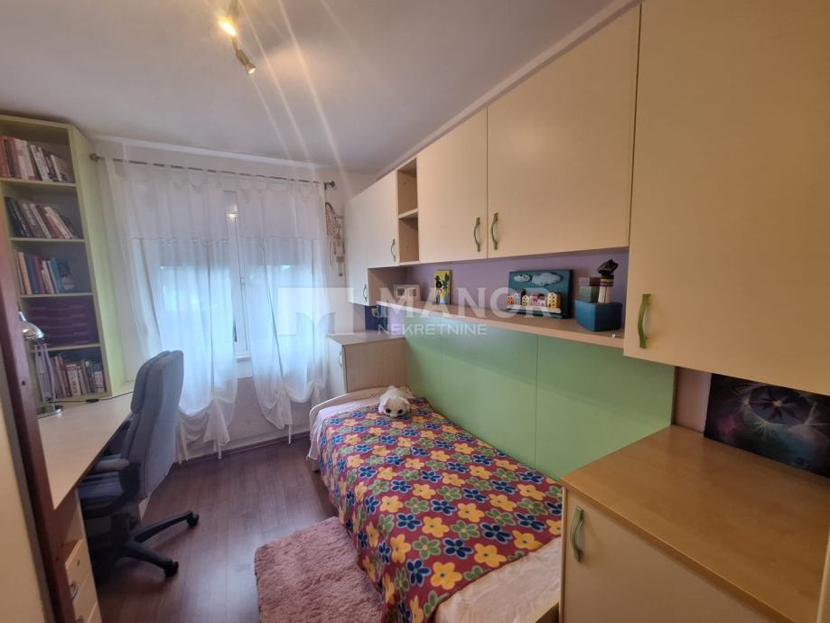 Stan se sastoji od hodnika, kuhinje s blagovaonicom i dnevnim boravkom, dvije spavaće sobe i