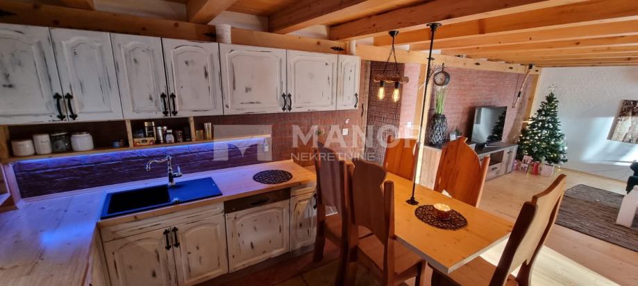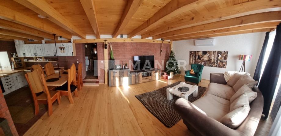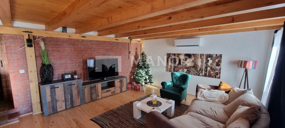 U prizemlju se nalazi prostrani dnevni boravak koji se povezuje s kuhinjom, stvarajući tako otvoreni koncept idealan za obiteljska okupljanja i druženja s prijateljima.