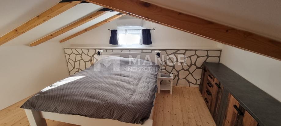 Na gornjoj etaži smještene su dvije sobe, uz wc i galeriju koja može poslužiti kao radni kutak ili prostor za opuštanje.