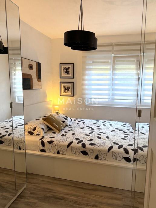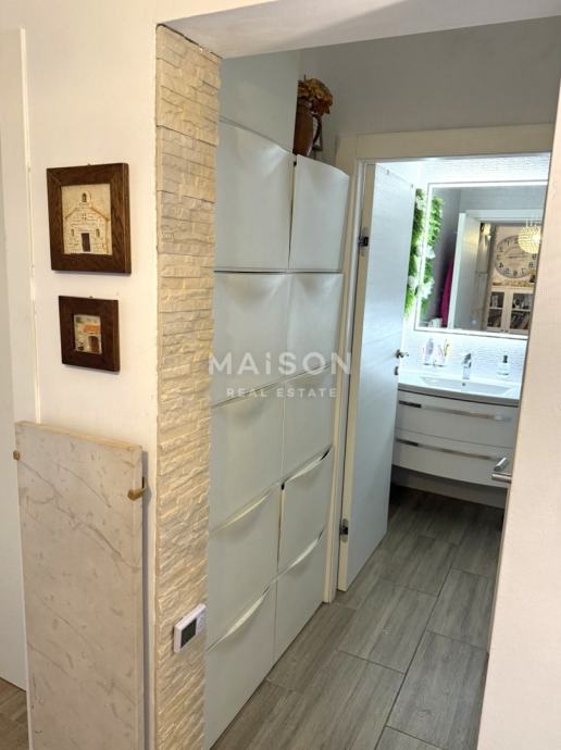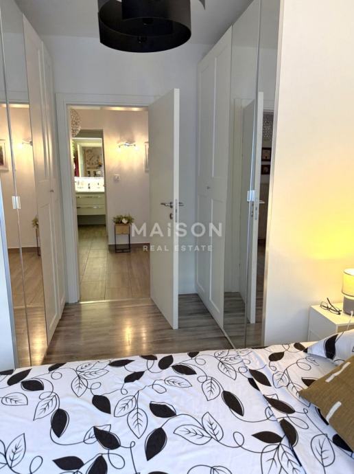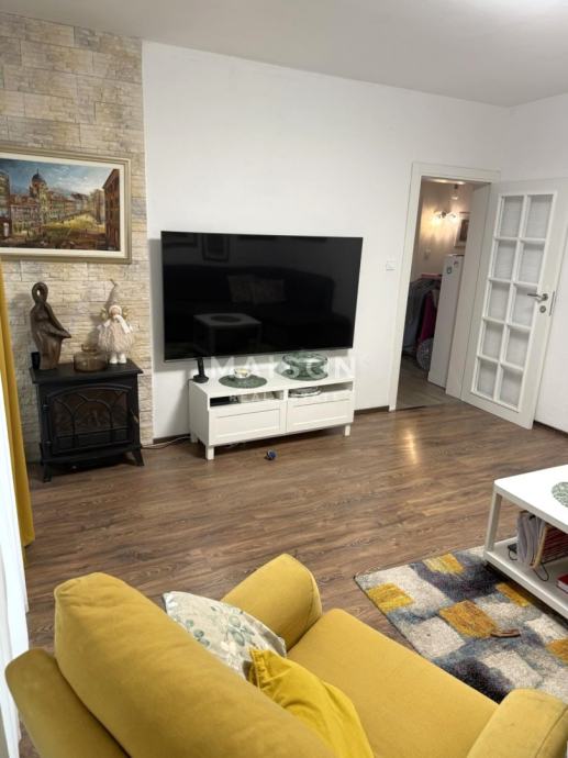 Raspored prostorija je klasičan i iznimno praktičan: dvije udobne spavaće sobe, prostrani dnevni boravak, kuhinja s blagovaonicom, kupaonica, ostava te zatvorena lođa koja dodatno obogaćuje životni prostor. Pripada mu i spremište u podrumu zgrade. Stan je orijentiran prema jugoistoku, što osigurava obilje prirodnog svjetla tijekom cijelog dana.