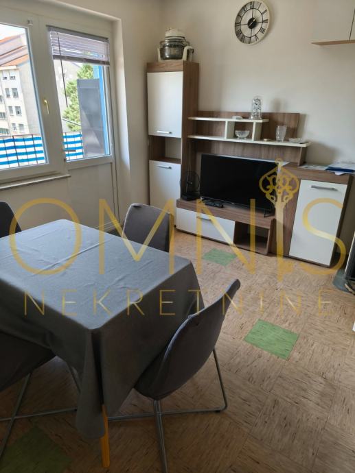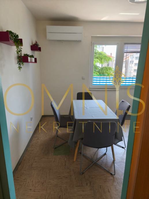 Stan je djelomično namješten, uredno održavan, te funkcionalnog rasporeda. Opremljen je klima uređajem, PVC stolarijom i klasičnim parketima u sobama. Kuhinja i kupaonica su opremljene osnovnim aparatima i sanitarijama. Dnevni boravak ima izlaz na balkon s pogledom na okolne zgrade i zelenilo.