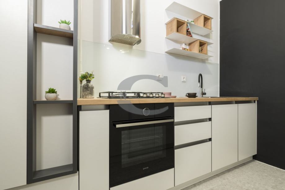 Sastoji se od od kuhinje sa blagovaonom(potpuno nova kuhinja sa svim novim aparatima –keramička ploča,pećnica,napa,perilica sudja.),