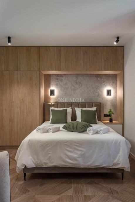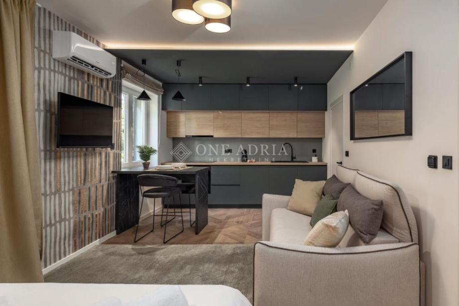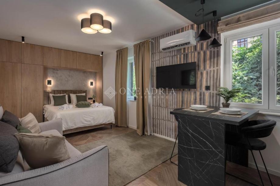 Prodaje se stan površine 65,21 m2 smješten u samom centru grada, u mirnoj ulici stare jezgre, udaljenoj svega dvije minute hoda od Korza. Izvorno je bio koncipiran kao trosoban stan, no preinakom su izvedene dvije potpuno odvojene i luksuzno uređene stambene jedinice, što ovu nekretninu čini izuzetno atraktivnom i za vlastito korištenje i kao investiciju za turistički ili dugoročni najam.