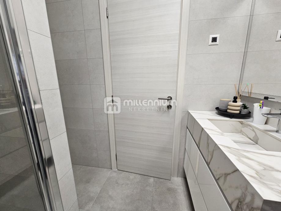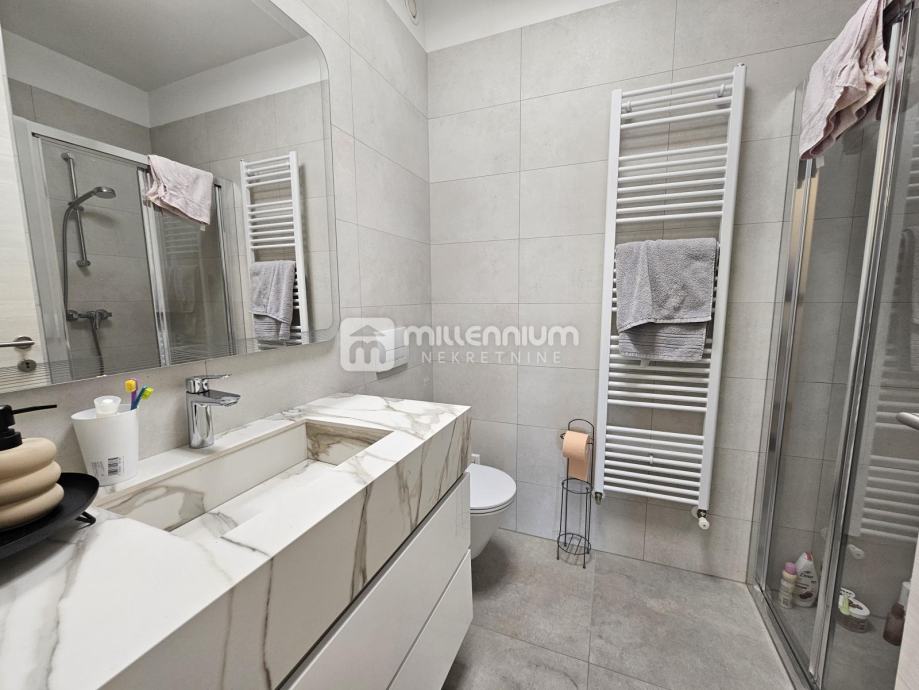 Stan je orijentiran na jugozapad i sjever, što osigurava obilje prirodnog svjetla tijekom cijelog dana. Dodatni prostor za opuštanje nudi lođa, savršena za uživanje u jutarnjoj kavi ili večernjem čaju s predivnim pogledom na more. Uz stan dolazi i praktično spremište od 5.80m2 te dva parkirna mjesta od 25m2 u garaži, što dodatno povećava udobnost i praktičnost svakodnevnog života.