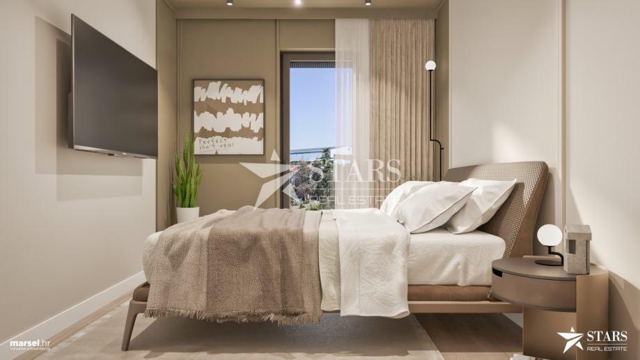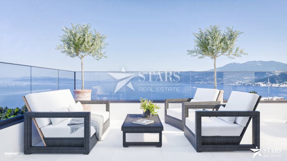 Sa balkona se pruža panoramski pogled na more i kvarnerske otoke, što dodatno naglašava vrijednost ove nekretnine.