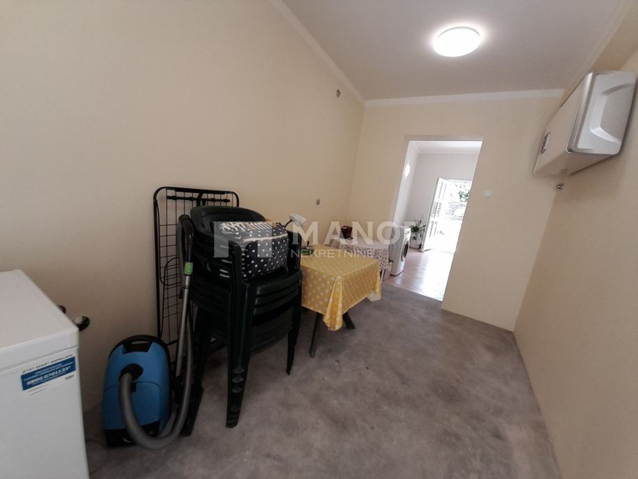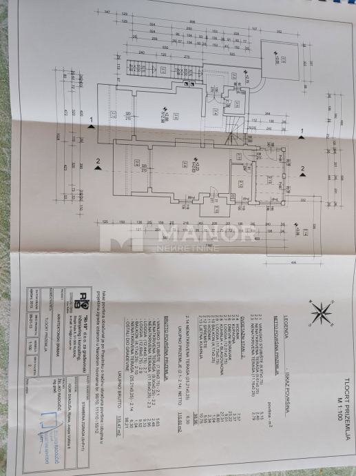 dnevnog boravka, tri spavaće sobe, kupaonice, toaleta i spremišta, a također ima i izlaz na terasu i na okućnicu na kojoj se moze napraviti i bazen.