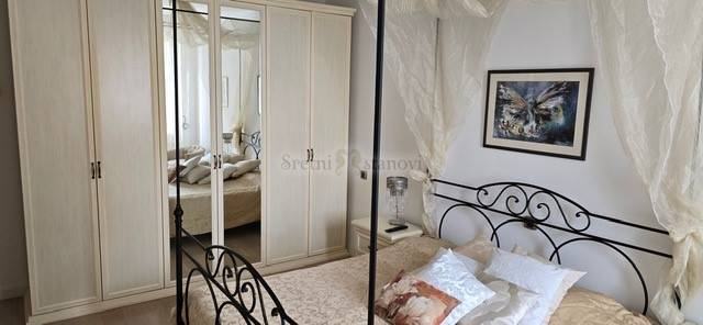 Veliki, Lijepo uređeni i namješteni stan u centru grada za najam , na izvrsnoj lokaciji. Stan na petom katu se iznajmljuje dugoročno. Sastoji se od dnevnog boravka, balkona, kupaone, dvije spavaće sobe, utility room, odvojene kuhinje, blagovaone i dodatnog balkona. Spavaća soba 2 se može urediti i namjestiti prema dogovoru s najmoprimcem. Potpuno je namješten svim aparatima i uređajima. Internet je aktivan i u cijeni je najma. Grijanje je etažno plinsko i klimatizacija. Režije se plaćaju dodatno (osim pričuve), a internet je u cijeni najma. Izvrstan stan na odličnoj poziciji u centru grada s blizinom garaže i otvorenih parkinga. Kvalitetan stan za poslovne ljude, zaposlenike firmi i slično.