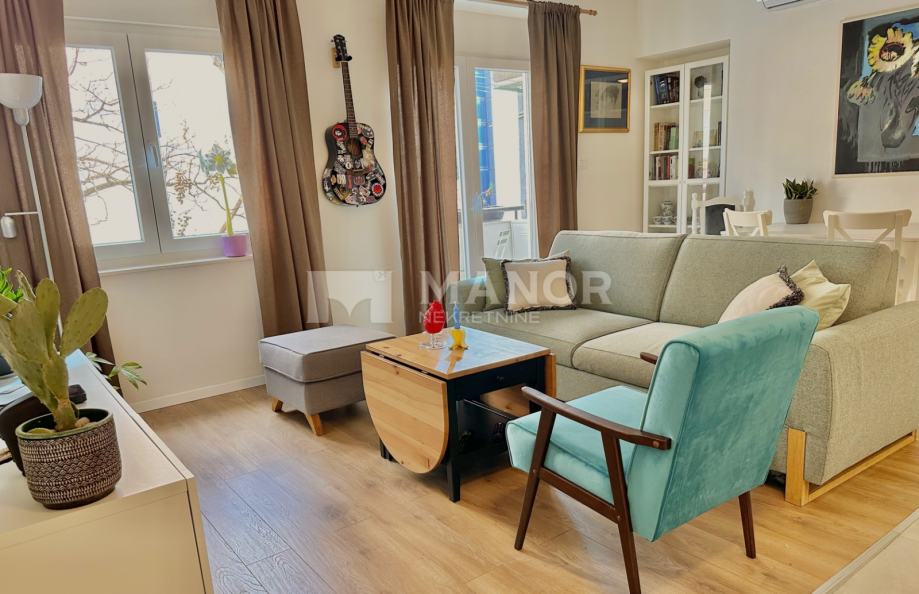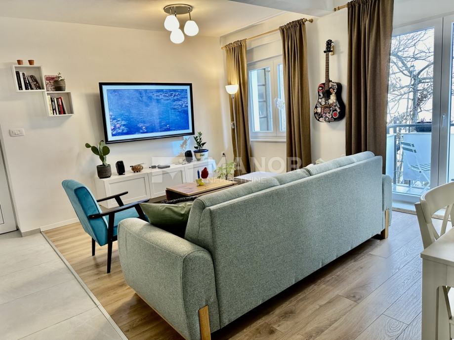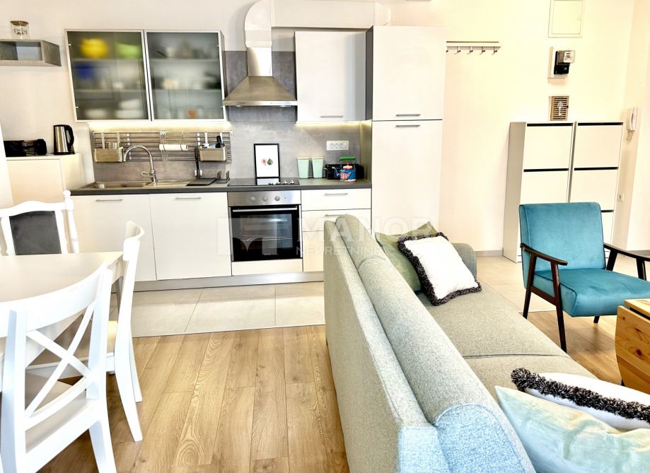 Manor predstavlja moderno uređen 1S+DB stan za najam, na Pećinama, površine 55 m2.