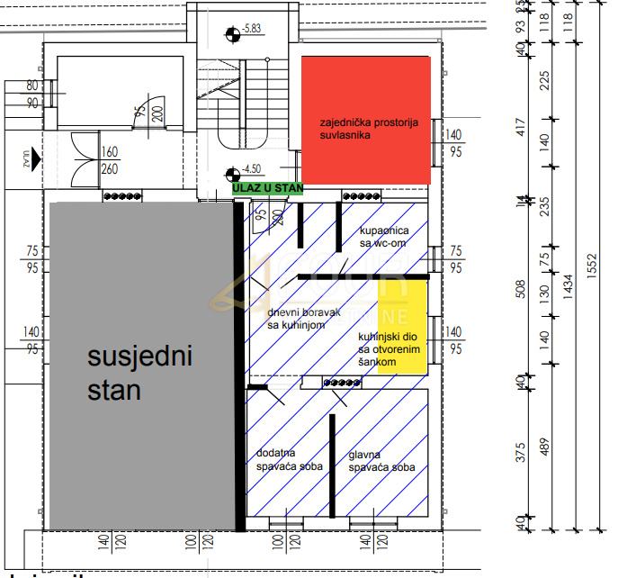 Prodaje se stan na atraktivnoj lokaciji na Pećinama, površine 44,44 m2, u visokom prizemlju uredne stambene zgrade. Preuređen je u funkcionalan dvosobni stan s dnevnim boravkom i pogledom na more. Orijentiran je prema jugu i istoku, što mu daje obilje dnevnog svjetla.