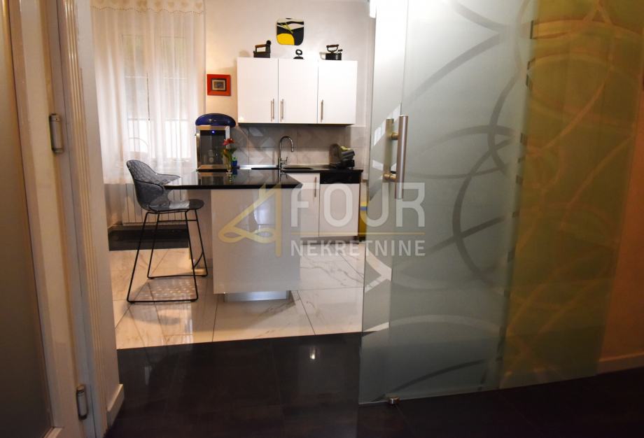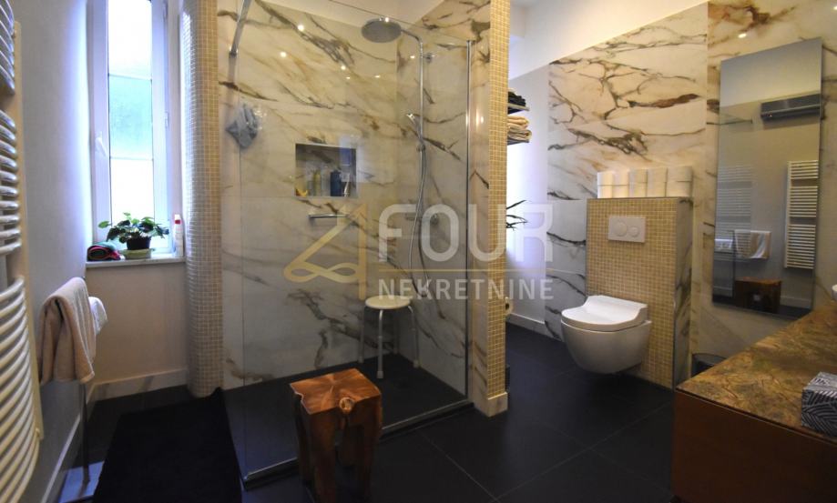 Stara zgrada, visoki plafoni, prostor svijetao i prozračan. Svaki detalj u stanu je pažljivo odabran i priča svoju priču. Kvalitetni materijali odaju dojam luksuza, a prostrani dnevni dio stana s velikim balkonom čini ovaj stan posebnim. Open space koncept je uklopljen u staru arhitekturu jer ipak ima malo zidova, ali je sve otvoreno i dostupno.