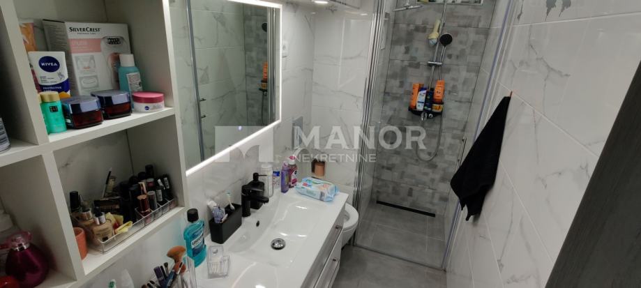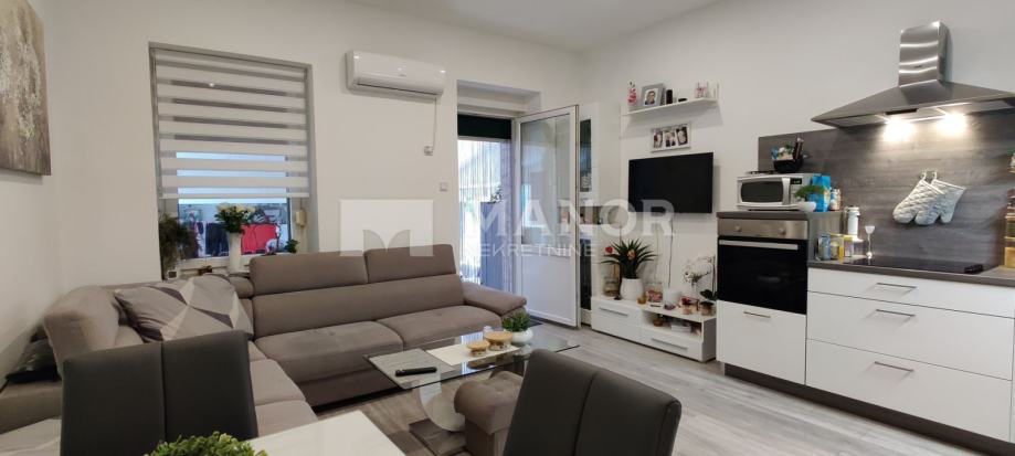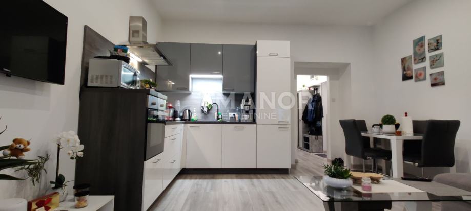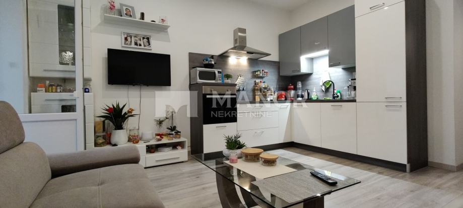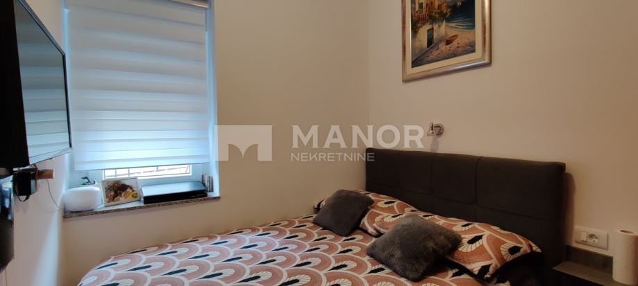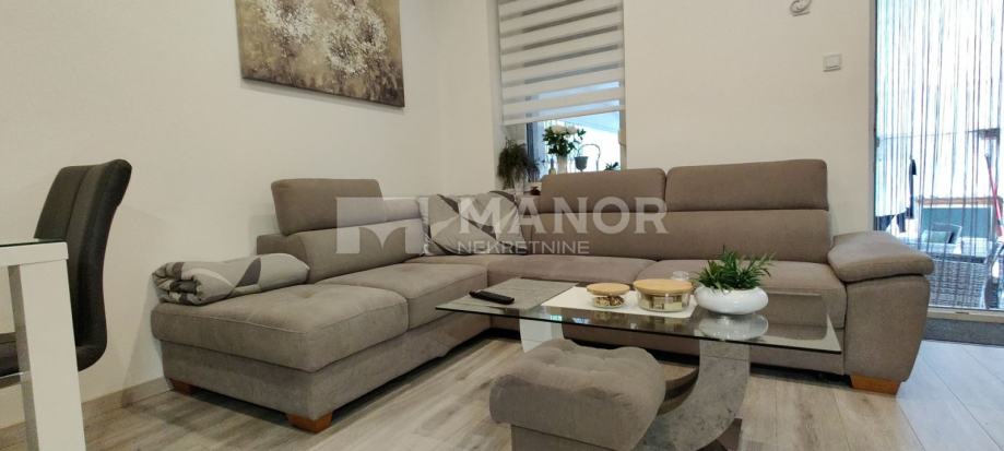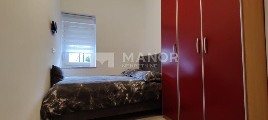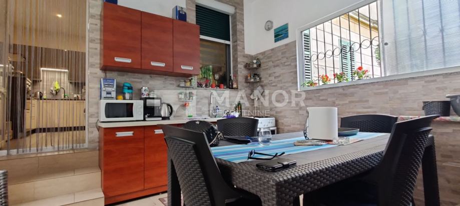 Stan također ima izlaz na okućnicu s malenim vrtom, vanjskim tušem te ljetnom kuhinjom, a pripada mu i drvarnica.