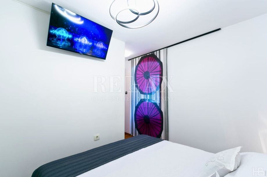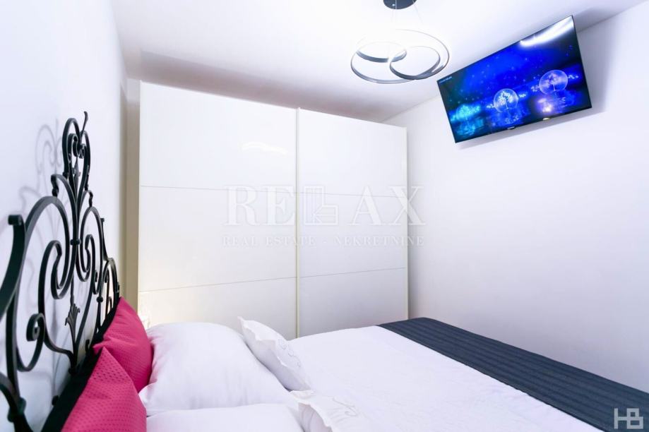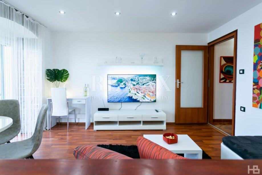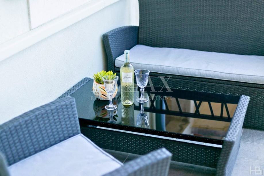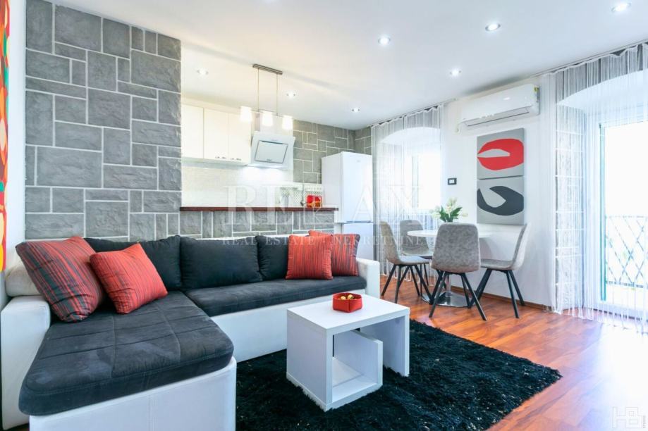 Udaljen je svega 20 metara od mora, dok se centar grada nalazi na 2,5 kilometra, što omogućava idealan spoj mirnog obalnog života i blizine svih gradskih sadržaja. Stan je potpuno namješten i odmah useljiv, a ispred zgrade postoji mogućnost parkiranja.