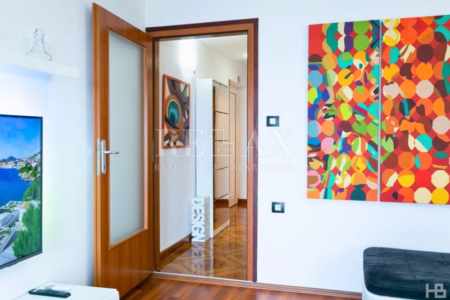 Stan se sastoji od hodnika, kuhinje, blagovaonice, dnevnog boravka, kupaonice i spavaće sobe, dok balkon nudi otvoreni pogled na more. Adaptacija stana dovršena je 2023. godine kada su obnovljene sve instalacije struje i vode, zamijenjena stolarija, postavljeni novi podovi te je stan potpuno opremljen novim namještajem i klimatizacijskim uređajem.