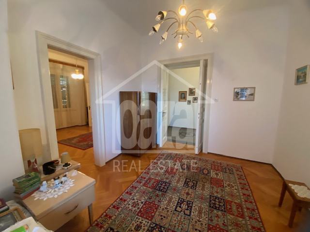 U prizemlju vile nalazi se veći ulazni prostor koji povezuje lijep i sunčan dnevni boravak, kuhinju, unutarnje stepenice koje su izuzetno dekorativne. Na polukatu je sanitarni čvor. Na prvom katu su tri prostrane sunčane sobe salonskog tipa na jug, iz jedne sobe je izlaz na balkon s pogledom na more, sobe su međusobno povezane, još je jedna manja soba, prostrana kupaonica i stepenice za visoko potkrovlje koje ima stajaću visinu i pruža mnoge mogućnosti uređenja. Sva vanjska stolarija je nova a unutarnja stolarija je svježe restaurirana u originalnom stilu.