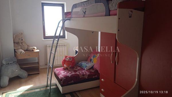 U mirnom dijelu grada iznajmljuje se prostran stan površine 85 m² smješten u potkrovlju obiteljske kuće. Stan se sastoji od dnevnog boravka, spavaće sobe, dječje sobe, kuhinje s blagovaonicom te velikog balkona idealnog za uživanje na otvorenom.