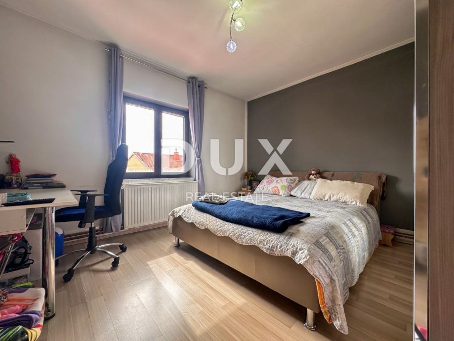 U DUX ponudu dobili smo etažu kuće na Pehlinu, smještenu na prvom katu s odvojenim vanjskim stepeništem i izlazom na prostranu terasu od 40 m2. Stan se sastoji od dvije prostrane spavaće sobe, dnevnog boravka, kuhinje s blagovaonicom, kupaonice i hodnika.