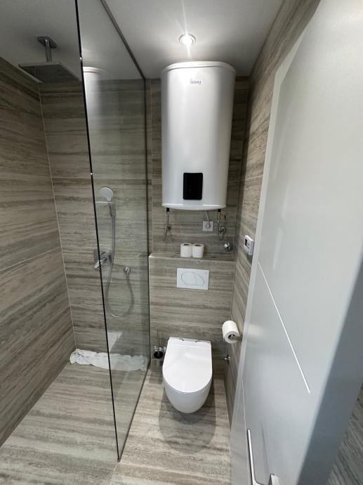 Opremljen je kvalitetnom bijelom tehnikom sa podnim grijanjem i klimom.