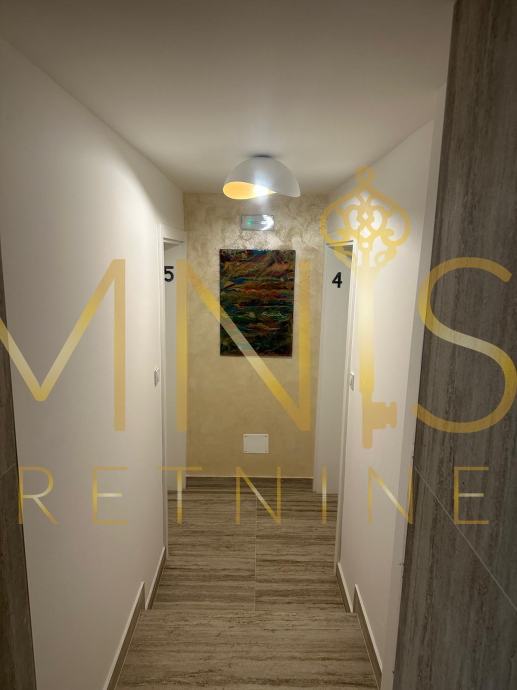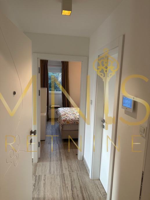 Opremljen je kvalitetnom bijelom tehnikom s podnim grijanjem i klimom.