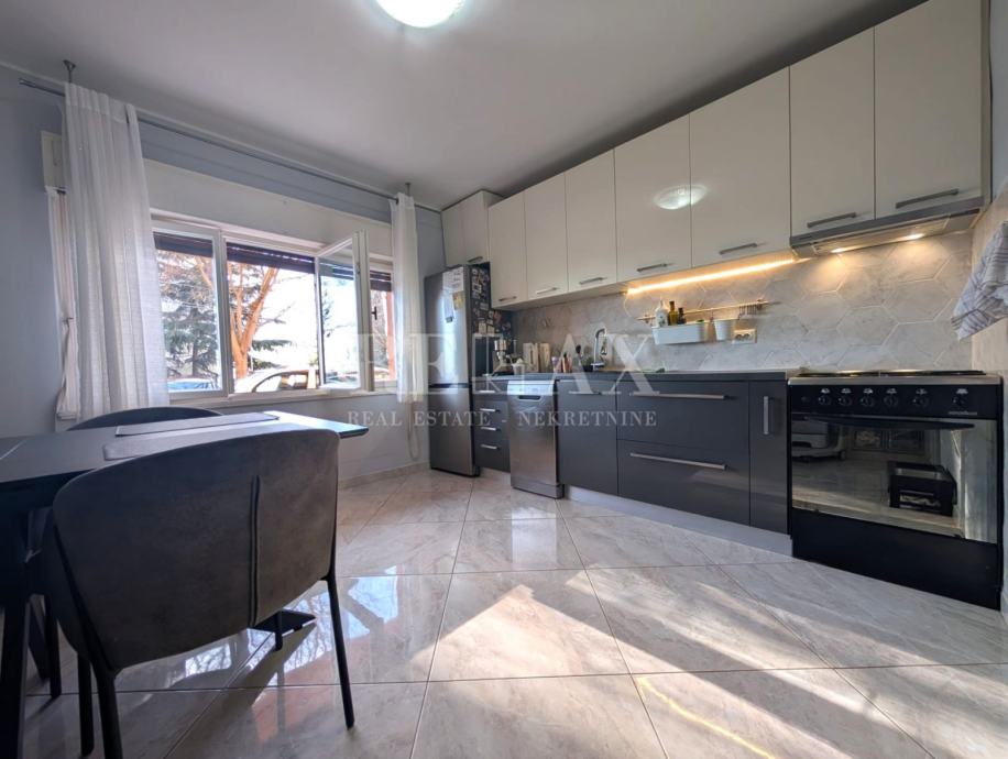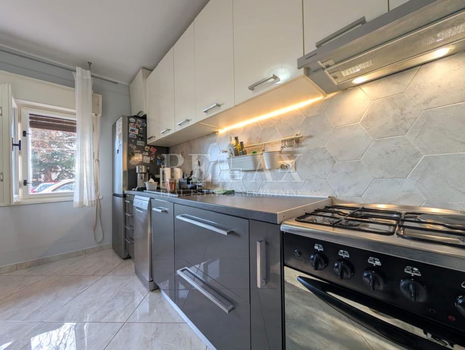 Na prodaju je funkcionalan i potpuno namješten stan površine 56 m², smješten u prizemlju uredne stambene zgrade s pet katova na mirnoj lokaciji u riječkom naselju Podmurvice.