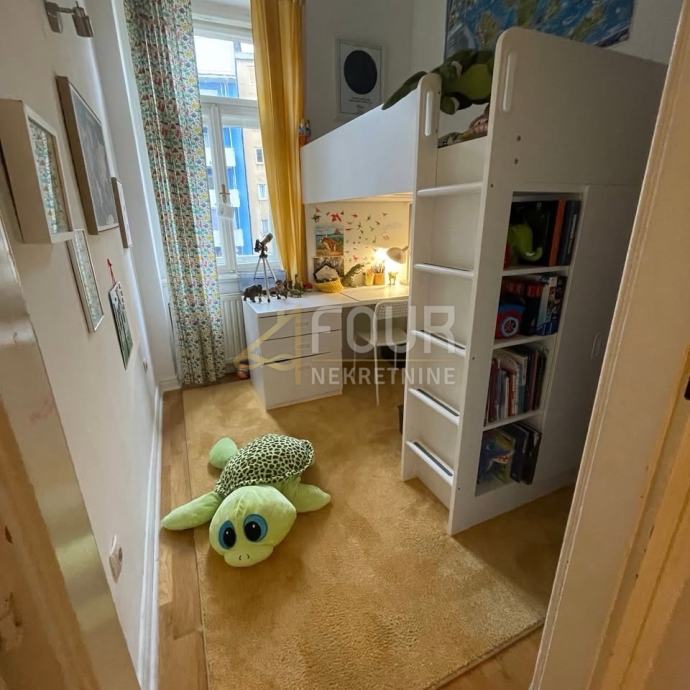 Stan odiše karakterom i šarmom klasične riječke arhitekture – visoki stropovi od 3,7 metara stvaraju dojam prozračnosti i elegancije, dok raskošan dnevni boravak površine čak 50 m2 nudi izniman osjećaj prostranosti.