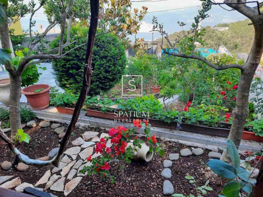 U visokom potkrovlju, do kojeg vodi vanjsko stubište je stan koji je u roh bau fazi a predviđen je za uređenje još jedne stambene jedinice jedinstvenog pogleda sa balkonom koji se proteže cijelom dužinom kuće. Kuća ima dvije garaže, lijepu vrtnu kućicu s ljetnom kuhinjom i roštiljem. Oko kuće je kaskadni vrt s terasama bazen, jacuzzi, sunčalište i zelena površina koja čini okoliš stvoren za uživanje.