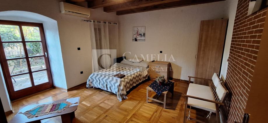 Ovaj zanimljivi i vrlo funkcionalan stan nalazi se u naselju Mlaka, u prizemlju kuće izgrađene 1880 godine koja se sastoji se od 3 stana, u neposrednoj je blizini samog središta Rijeke, udaljenog 20-ak minuta hoda od poznatog riječkog Korza. Stan se prostire na 82m2 i vrlo je funkcionalnog rasporeda te se sastoji od prostranog dnevnog boravka, dvije spavaće sobe koje su odvojene velikim hodnikom koji ima direktni izlaz na terasu koja obiluje zelenilom i dnevnim svijetlom, kupaonice, Wc-a, ostave, kuhinje te prostrane terase koje će pružiti maksimalni komfor stanovanja. Sobe krase drveni svodovi sa velikim i lijepim drvenim gredama. Posebno treba istaknuti mikro lokaciju stana, jer se stan nalazi u nizinskom dijelu Rijeke, nije u brdu, u blizini je željezničkog kolodvora, blizu glavne ulice Kralja Zvonimira, sa besplatnim parkingom na ulici. Stan je u blizini svih bitnih sadržaja, parka i javnog prijevoza, trgovina, banaka, škola, vrtića. Veličina terase i okućnice pruža dodatnu vrijednost ovom šarmantnom stanu te je prava oaza za svakodnevno opuštanje. S obzirom na dostupnost svih potrebnih sadržaja kao i neposrednu blizinu javnog prijevoza smatramo ovaj šarmantan stan idealnom prilikom kako za stanovanje tako i za investiciju, jer pruža potpuni komfor kako za više članu obitelj sa kućnim ljubimcima tako i za mlade suvremene ljude koji traže funkcionalnost i ekonomičnost. Zaljubljenici u atraktivan predio šireg riječkog centra pametno će investirati novac jer uz potpunu ili djelomičnu adaptaciju u unutrašnjosti stana ili na prostranoj terasi dobiti će pravu vrijednost za uloženi novac.