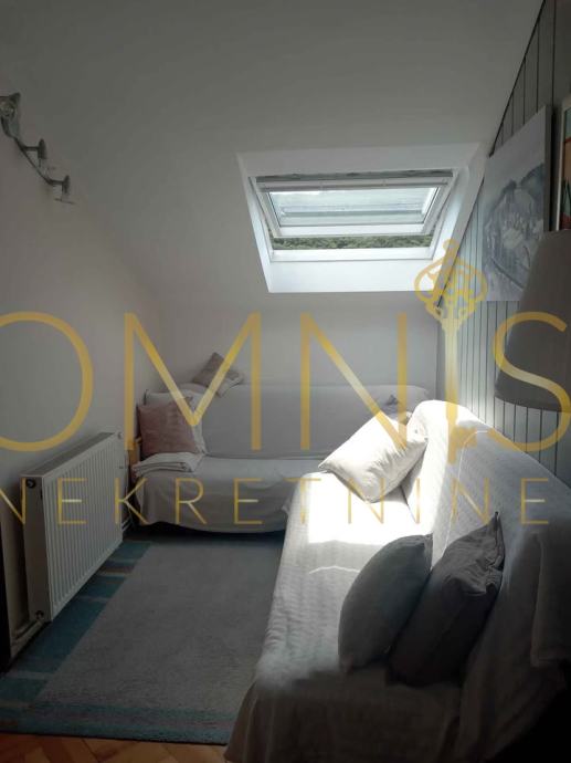 Stan je u potpunosti namješten, klimatiziran te opremljen PVC stolarijom i Velux krovnim prozorima. Grijanje je etažno plinsko (Vailant).