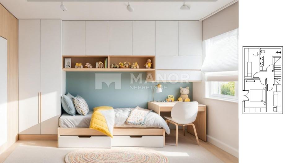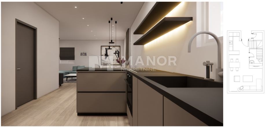 Manor predstavlja dvoetažni stan u izgradnji, smješten na području Škurinja, stambene površine 98 m².