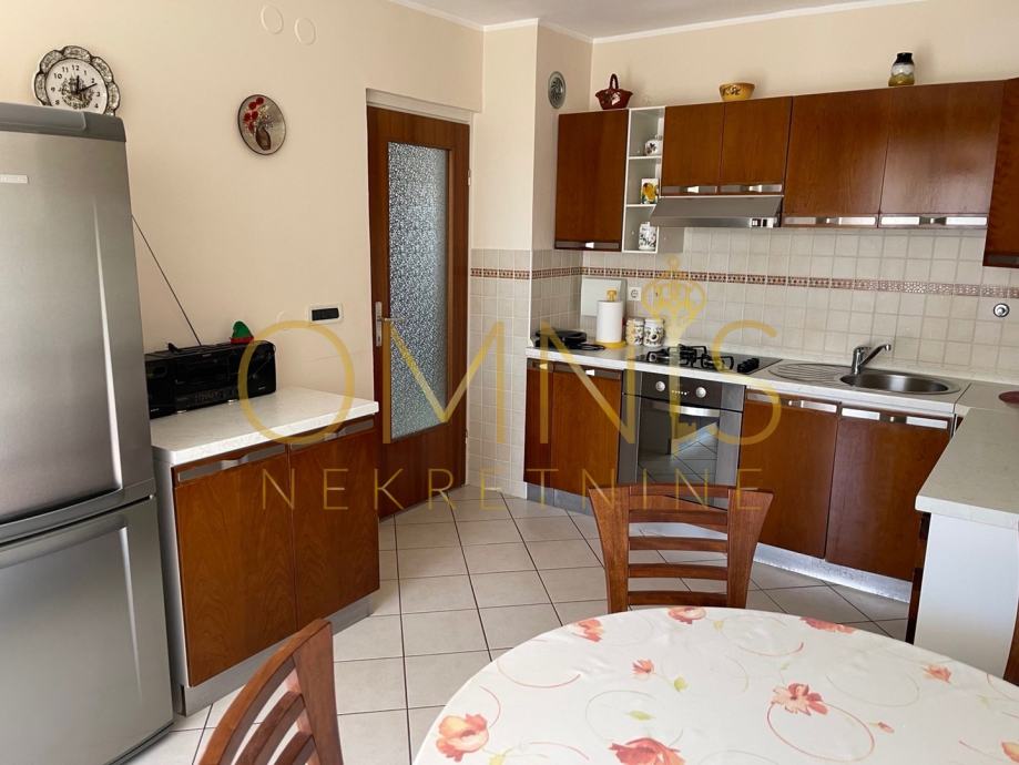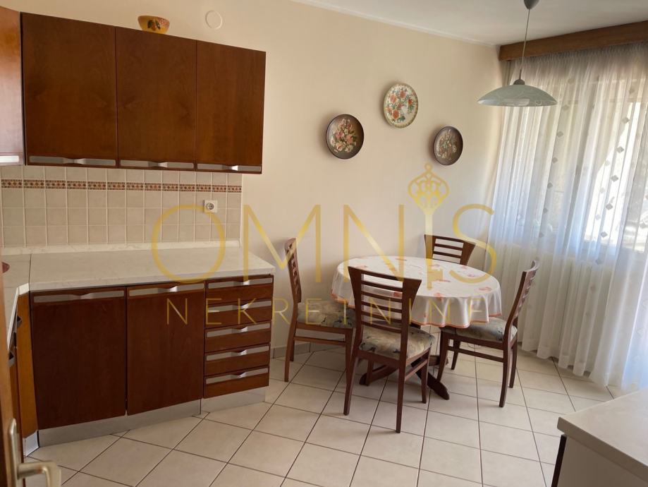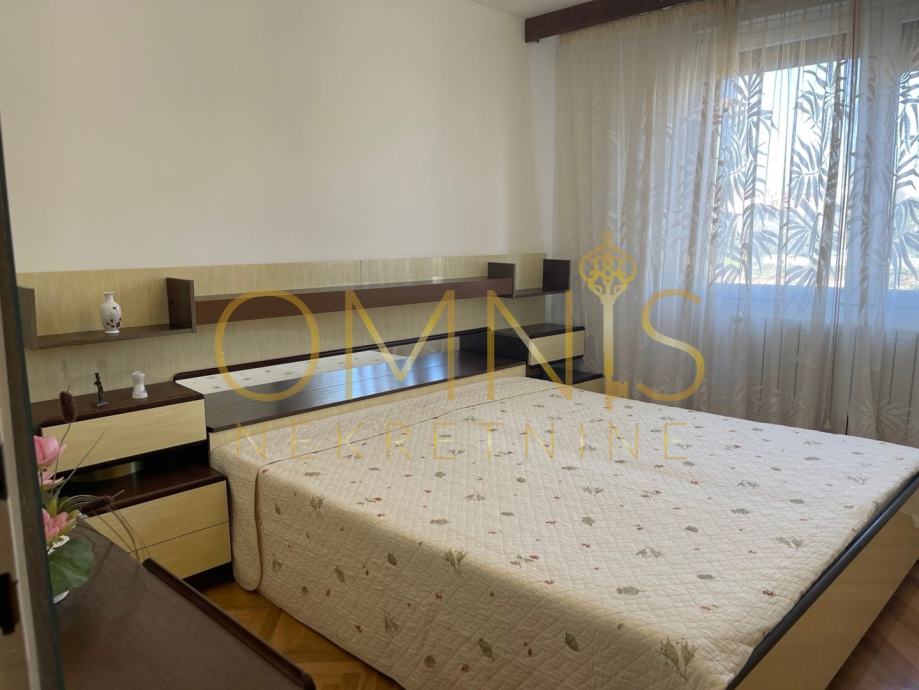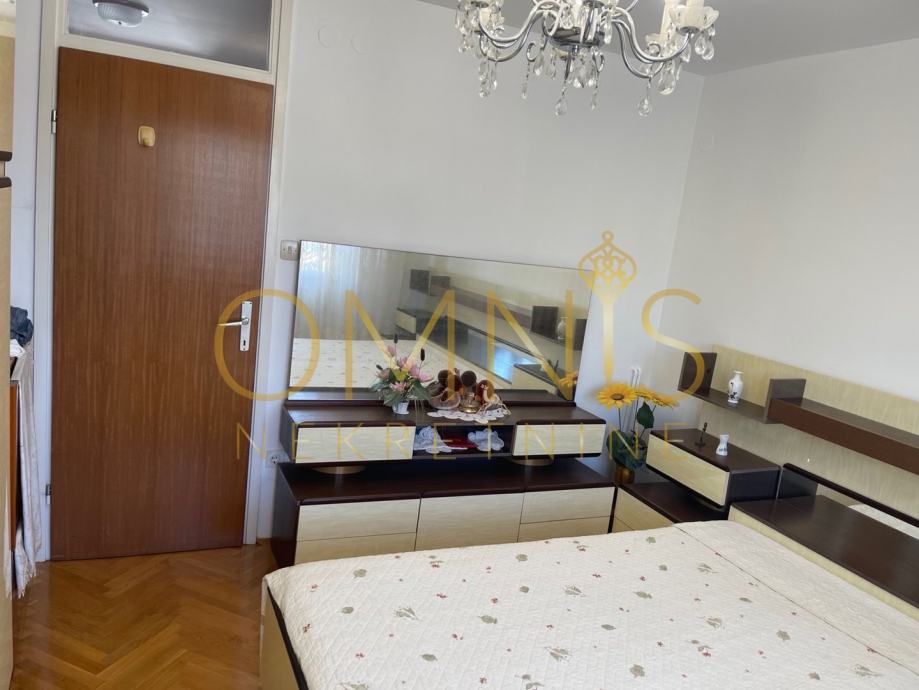 Na prodaju – potpuno namješten i lijepo uređen stan s dvije sobe, velikim balkonom i spremištem, ukupne površine 56 m2, smješten na 1. katu stambene zgrade.