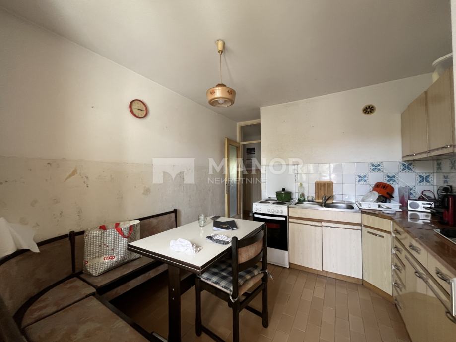 Stan se sastoji od hodnika, tri sobe, kuhinje s blagovaonicom, izbe, toaleta, kupaonice, lođe i pripadajućeg