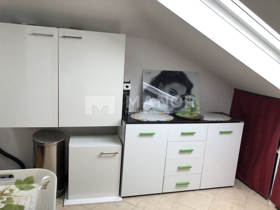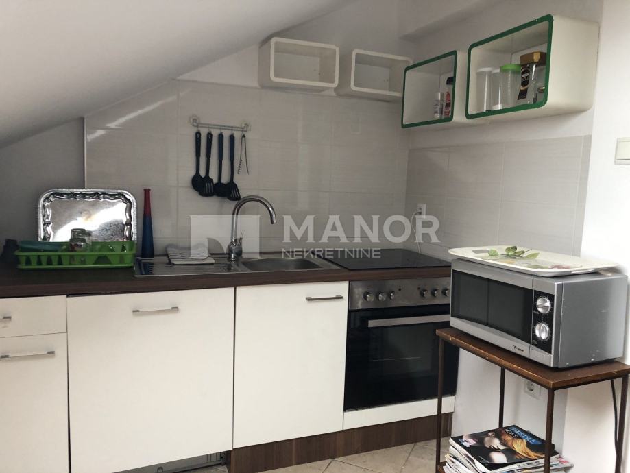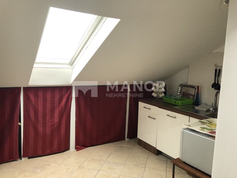 Na gornjoj etaži, površine 36 m2, nalaze se kuhinja, soba te kupaonica.